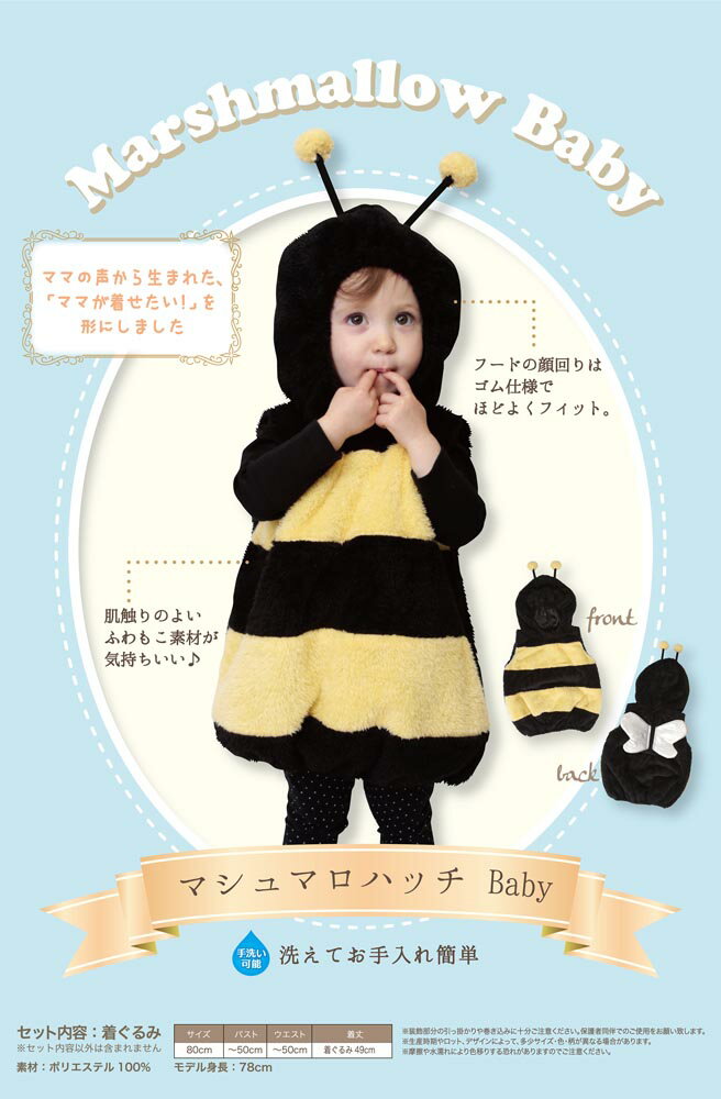 ハロウィン コスプレ マシュマロ ハッチ ベビー ハチ 蜂 みつばち 着ぐるみ コスプレ コスチューム 赤ちゃん ベイビー 乳児 衣装 仮装 ハロウィーン ☆