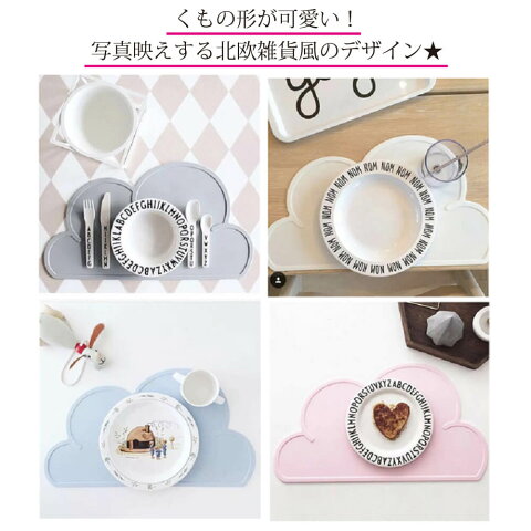 )【送料無料】ランチョンマット シリコン 雲型 くも 離乳食 ベビー ベビー用品 キッズ 子供用 お食事マット 北欧 ごはん ご飯 食洗器対応 BPAフリー 撥水 洗える くもの形が可愛いシリコンランチョンマット!お子様の離乳食に!おしゃれ かわいい ピンク グレー ブルー グリーン ホワイト 出産祝い プレゼント ギフト 2