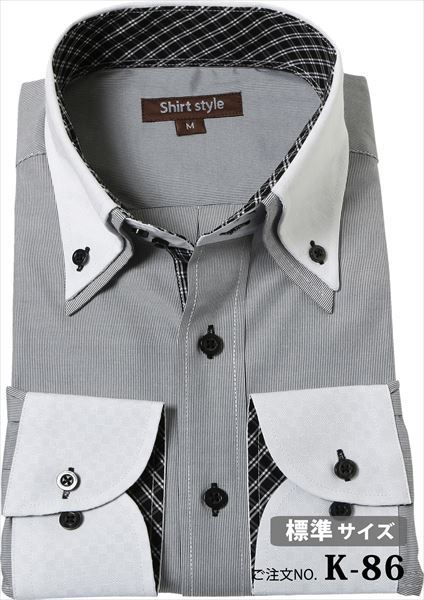 yシャツ おしゃれ ワイシャツ 長袖 ボタンダウン ストライプ カラーシャツ 標準 カッターシャツ カラーシャツ メンズ シャツ ビジネスシャツ パイピング グレー ブラック 黒 首 えり M 39 L 41 LL 43 3L 45 メンズ 男性 紳士 営業 制服 ユニフォーム / W-95 2枚 送料無料
