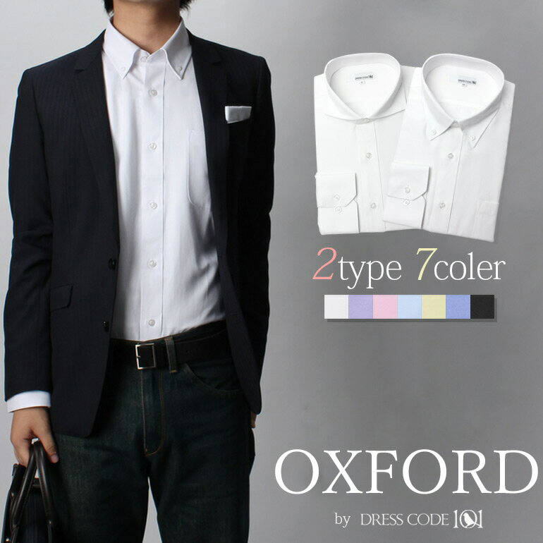 【選べる襟型2タイプ◆7カラー】オックスフォードシャツ ワイシャツ DRESS CODE シャツ メンズ [ボタンダウン カッタウェイ ホリゾンタルカラー 長袖 コンバーチブルカフス メンズ 紳士用 男性用 無地 白 青 黒 黄 紫 シンプル ビジネス カジュアル プレッピー]
