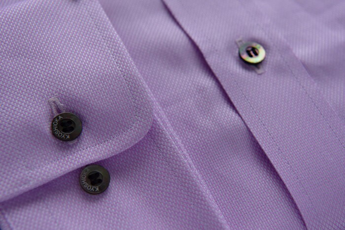 奈良県川西町で製造された「黒蝶貝の貝ボタン(10mm17型)※ボタンサイズ等の指定はできません」使用のオーダーシャツです。